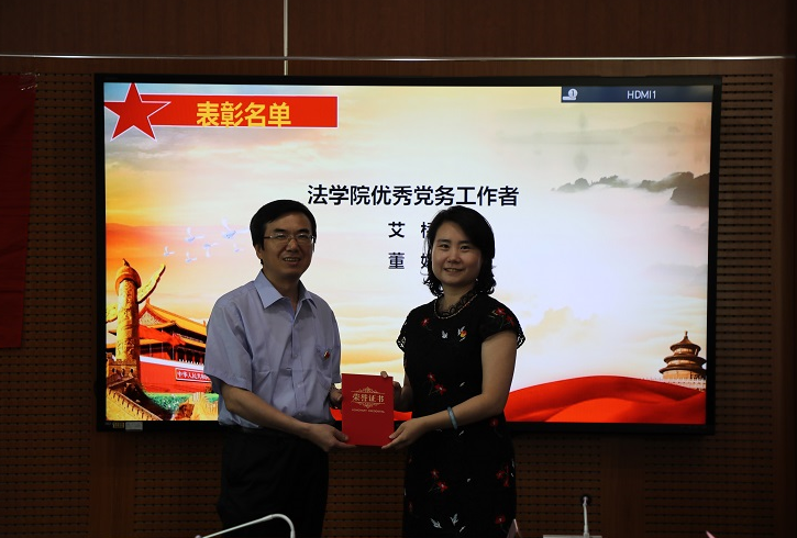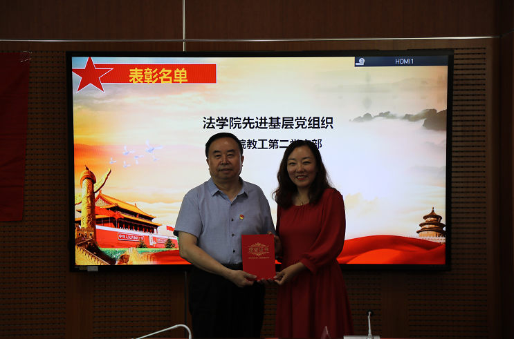 在中国共产党成立100周年之际,为进一步深化党史学习教育,激励党员同志们继续为了党的初心不断奋进,对多年来在党建工作中表现突出的党员同志和基层组织进行表彰,7月5日下午,法学院隆重召开“两优一先”表彰大会。法学院领导班子成员、党委委员和师生党员代表30余人参加会议。大会由学院党委副书记、副院长张昊主持。