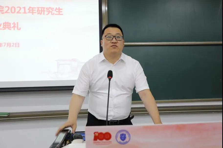 辅导员代表付常辉发言。他代表学工办和团委向2021届毕业生表示热烈的祝贺和留恋不舍,希望大家在参加工作或更高层次的求学中,增强志气,立天大志、做天大事,把小我融入祖国的大我、人民的大我之中,即使是最平凡的岗位,也要做出不平凡的工作;增强骨气,掌握自身发展的主动权,坚决抵制不良诱惑,不贪图享受,守纪律、讲规矩;增强底气,坚定必然胜利的信心,运用好在法学院学习的法律知识和实务技能,不负时代,不负韶华。