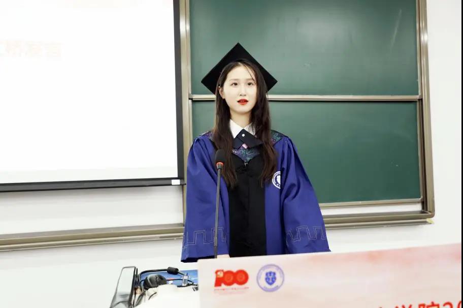 2021届研究生毕业生代表艾桥发言。她代表全体毕业生向学院师长致以崇高的敬意和衷心的感谢,感谢学院教会学生以专业而审慎的眼光紧跟时代,读懂社会;感谢学院提供的平台和机会,能够多次参与高水平学术会议,聆听真理大道,成长成材于“高起点、入主流、有特色、国际化”的优质培养土壤之中。艾桥毕业后,将作为一名选调生赴黑龙江省哈尔滨市人民检察院工作,她表示会把担当融入法治信仰,直面困难和挑战,切实担负起新时代法学青年人的重任,不辜负学院培养。
