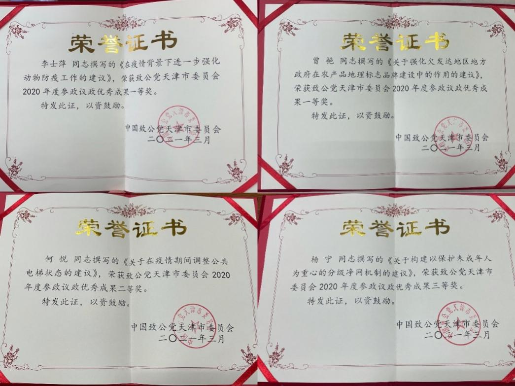 近日,中国致公党天津市委员会召开2020年度参政议政总结表彰大会。天津大学法学院何悦教授、李士萍副教授、曾艳副教授和杨宁老师分别荣获致公党天津市委员会参政议政优秀成果一二三等奖,为天大法学院成立6周年再添佳绩。