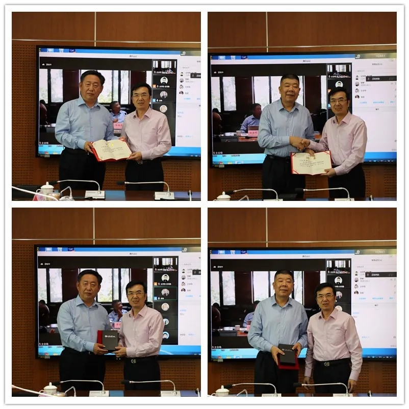 杨欢书记为肖金明教授和朱福惠教授颁发天津大学国家制度与国家治理研究院兼职研究员聘书。
