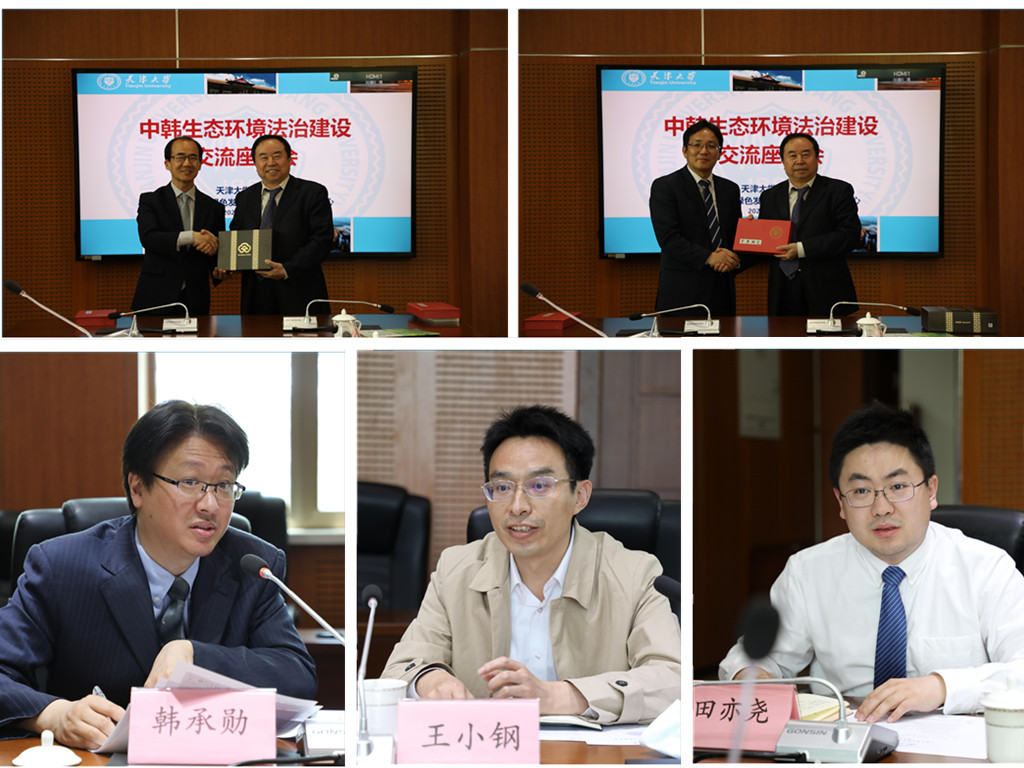 (通讯员 王文杰 摄影 李泽鹏)5月19日上午,韩国驻华使馆公使衔参赞黄启荣与韩国驻华使馆公使衔法律参赞尹卿元访问天津大学法学院。天津大学法学院院长、天津大学中国绿色发展研究院执行院长孙佑海,法学院副院长杨健,中国绿色发展研究院副院长王小钢,中国绿色发展研究院韩国法研究中心主任韩承勋等接待了访问团,并就中韩生态环境法治建设展开了交流座谈。