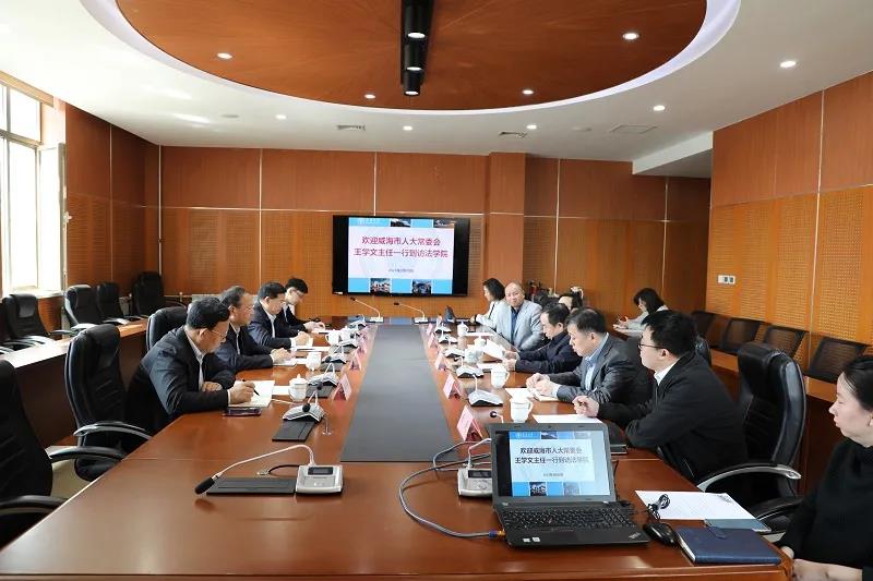 (通讯员 郭金石 摄影 李泽鹏)3月30日,威海市人大常委会党组书记、主任王学文,威海市人大常委会秘书长、二级巡视员杨万友,威海市人大法制委员会副主任委员、法工委主任张吉军,威海市人大常委会办公室政工科副科长李毅等一行四人到访天津大学法学院。法学院院长孙佑海,党委书记杨欢,副院长蓝蓝,副院长杨健,副书记、副院长张昊,天津大学讲席教授熊文钊等出席座谈。