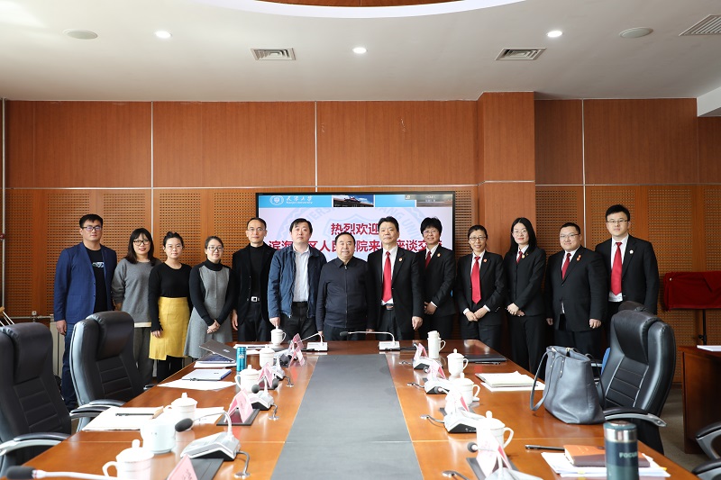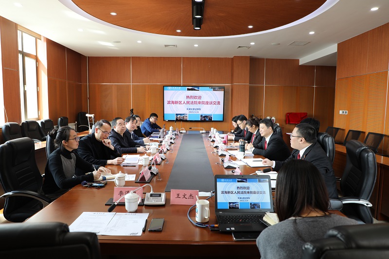 (通讯员 郭金石 摄影 李泽鹏)2020年3月24日,天津市滨海新区人民法院(天津自由贸易试验区人民法院)审委会专职委员田学新,民四庭庭长张俊者,北塘中关村科技园中心法庭庭长包津燕,北塘中关村科技园中心法庭法官田瑞刚、张红杰,民四庭法官齐姗姗等一行六人到访天津大学法学院。法学院院长孙佑海,副院长杨健,王绍喜副教授、杨梦莎老师、余慧华老师等出席座谈。