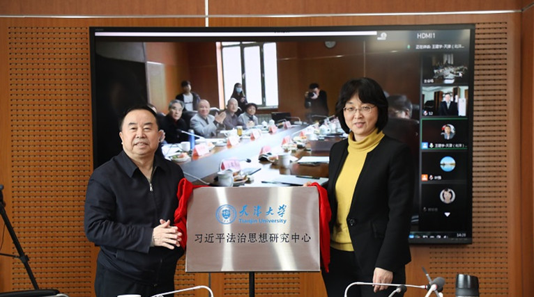 张俊艳处长与孙佑海院长共同为天津大学习近平法治思想研究中心揭牌。