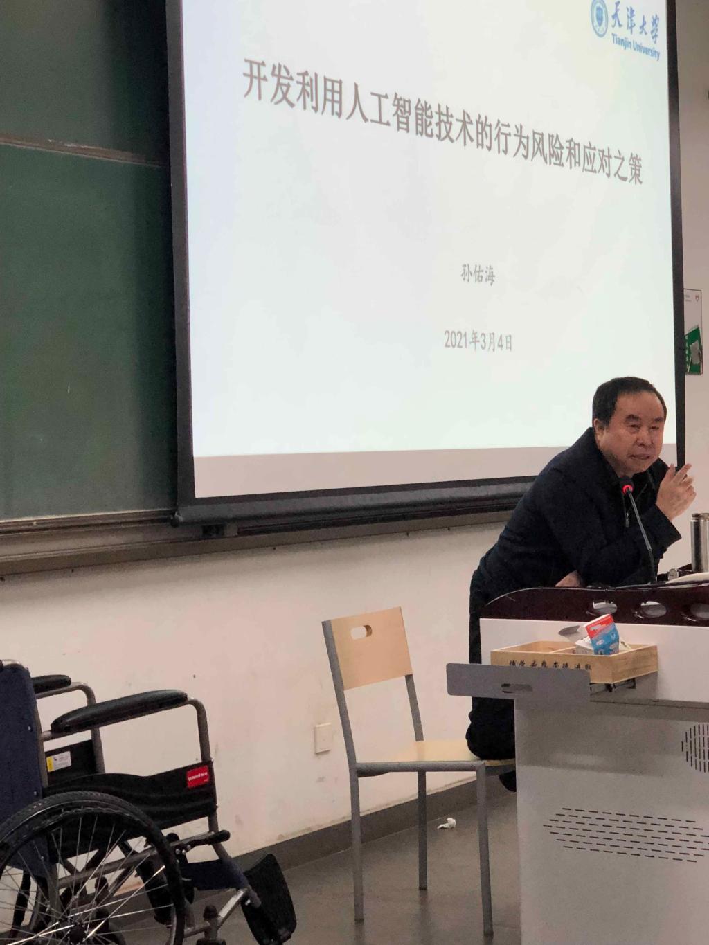 (通讯员 张净雪 摄影 张净雪)3月4日晚,本学期的全校新工科通识课程——《人工智能与法治导论》第一讲正式开始。孙佑海院长为全校来自不同专业的百余位同学专题讲授了开发利用人工智能技术的行为风险和应对之策。