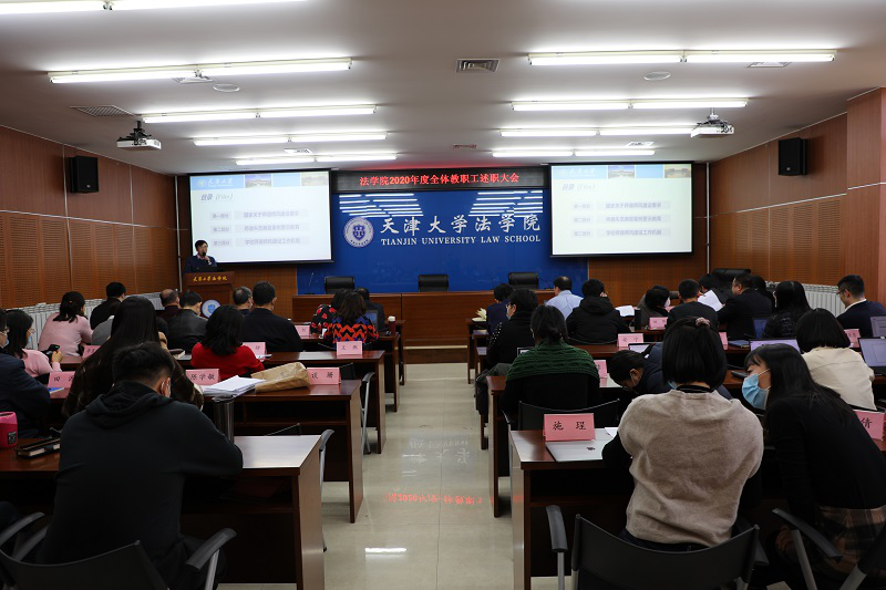 12月14-15日,法学院在332会议室召开2020年度述职大会,学院全体教职员工出席会议。述职分为两天举行,由张昊副书记、副院长主持。
