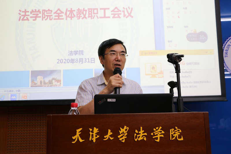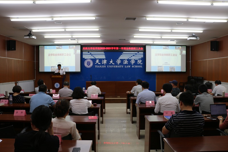 (通讯员 郭金石)2020年8月31日,法学院在七号楼330、332会议室举行2020-2021学年第一学期全体教职工大会。会议由院党委书记杨欢主持。