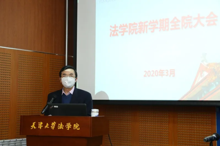 孙佑海还从党建工作、学科建设、队伍建设、教育教学、科学研究、学生工作、国际交流、高端培训、生物安全战略研究中心等方面,介绍了2020年学院的重点工作安排。孙院长指出,目前,抗击“新冠肺炎”疫情仍处于关键阶段,形势十分严峻,希望全体教职员工和学生积极配合学校及所在地疫情防控部门的工作,减少不必要的出行,不去人群聚集场所,出门一定要佩戴口罩,勤洗手、讲卫生。同时,希望大家在保重自身和家人健康的同时,以饱满的热情投入到新学期的各项工作之中,为法学院的快速发展做出新贡献。