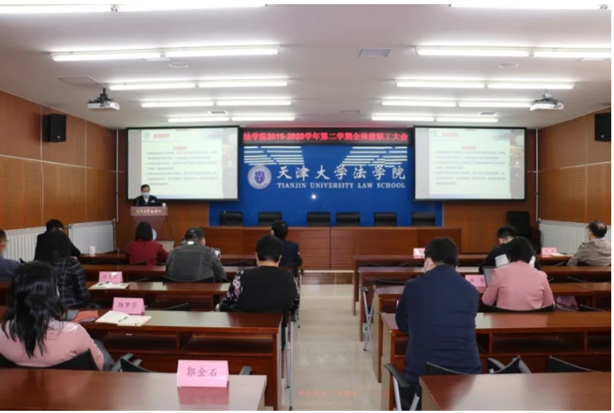 2020年3月25日,法学院在第七教学楼召开2019-2020学年第二学期全体教职工大会,鉴于当前疫情防控的需要,本次会议设置了三个会场,并通过视频直播的形式向身处外地的教师同步播放。会议由学院党委书记杨欢主持。