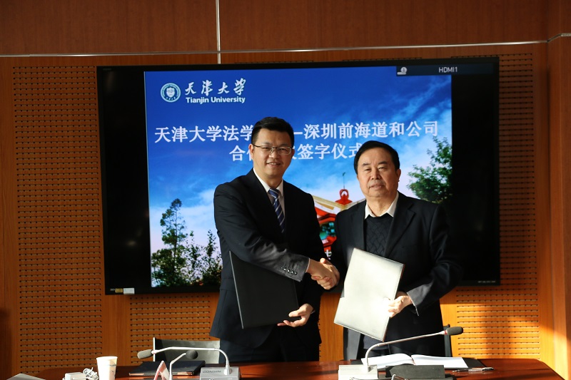 (通讯员 郭金石)2019年12月26日,“天津大学法学院-深圳前海道和网络科技有限公司”合作签约仪式在学院330会议室举行。深圳前海道和网络科技有限公司联合创始人、董事、总裁林培兴,高级法律顾问陈莉萍,法律服务总监刘桂菊,研发总监江亭,产品总监李灿荣,产品经理蔡清清;天津大学法学院院长孙佑海,党委书记杨欢,副院长蓝蓝,王燃老师等出席会议。