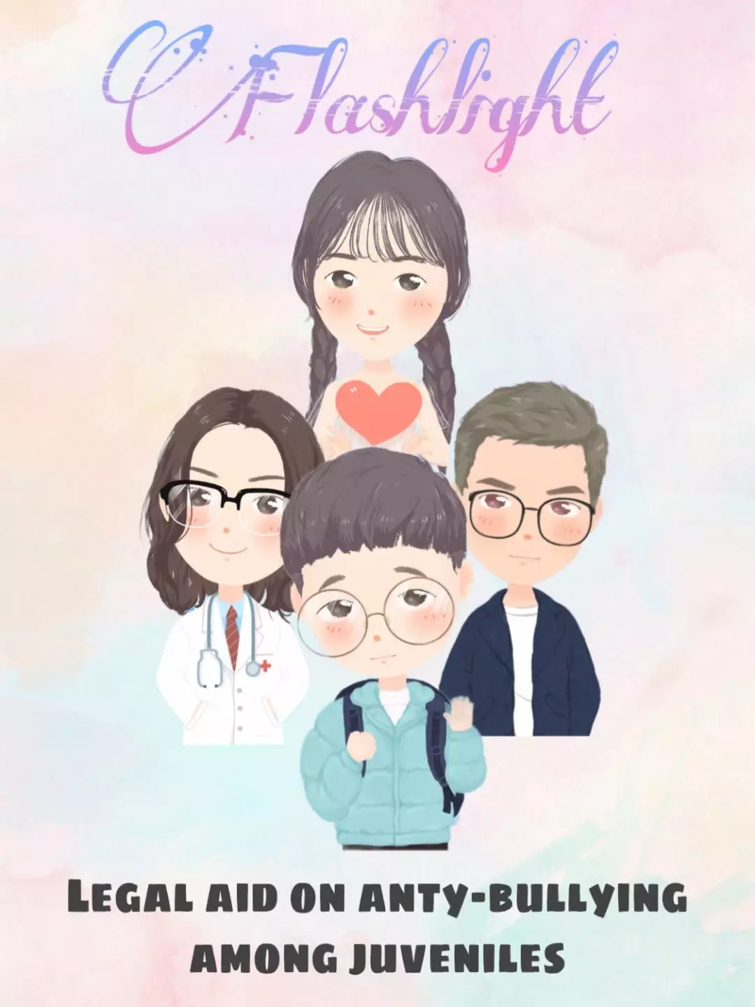 Flashlight队伍中,邱蓝仪、金小淅,王一帆三位同学从学生和家长的角度出发,通过情景模拟、背对背交谈等方式,旨在从根源上预防校园欺凌的发生;同时从法律和心理层面重视受害者的诉求,避免对青少年造成二次伤害,帮助他们迈向应有的未来。