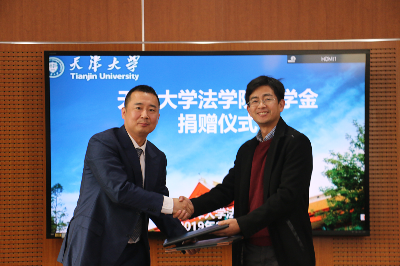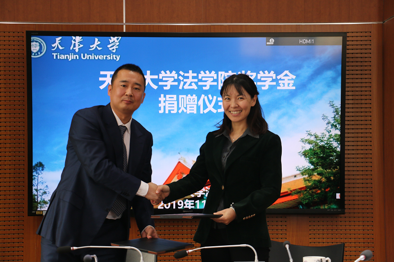 天津四方君汇律师事务所吕家鹏律师与天津大学北洋教育发展基金会签署捐赠协议。