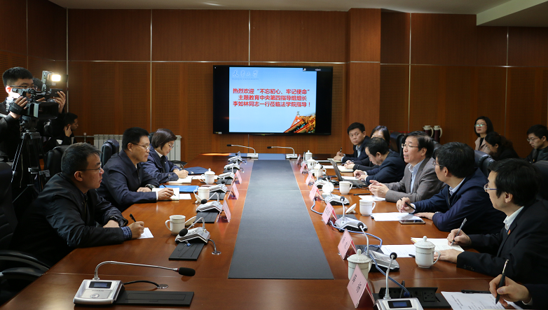 孙佑海院长代表学院领导班子向中央指导组李如林同志一行汇报了法学院开展“不忘初心、牢记使命”主题教育情况。孙院长首先回顾了法学院的发展历程,重点介绍了法学院复建以来在学科建设、师资队伍、人才培养、科学研究、国际化工作等方面所取得的成绩,以及下一阶段学院的重点工作,明确奋斗目标,继续推进学科建设,出台“新法科”实施方案,落实立德树人根本任务,为党和国家培养新时代法治人才,不断提升学院影响力和社会贡献。