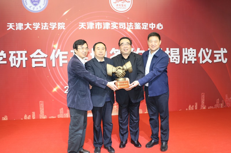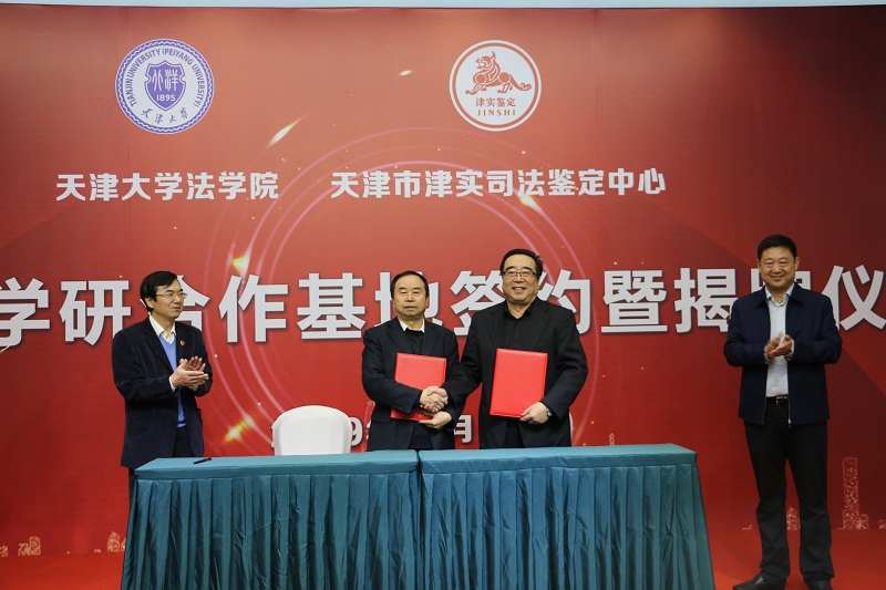 (通讯员 郭金石)2019年10月30日,天津大学法学院与天津市津实司法鉴定中心共建产学研合作基地正式揭牌成立。合作双方代表--天津大学法学院院长孙佑海,法学院党委书记杨欢;天津市津实司法鉴定中心主任常柏年,鉴定中心党支部书记、天津市法学会常务理事林志辉,鉴定中心副主任耿楠等出席了揭牌仪式。天津市法学会党组成员、联络部主任刘翠山,天津市人民检察院第一分院处长李革,天津市司法鉴定协会阎高勇,天津市律师协会副会长李清,天津市刑侦局原副局长张潍等嘉宾,以及天津大学法学院教师代表、津实司法鉴定中心专家代表等共计三十余人出席会议。
