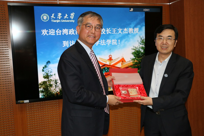 王文杰教授感谢天津大学法学院的邀请,回顾了两院在师生互访方面的友好往来,并且介绍了台湾政治大学及法学院情况,包括国际化、整合化、专业化的办学理念,全方位的法律研究领域,多元化的法学师资,与机构团体和学术单位开展的国际交流,公益服务课程等。