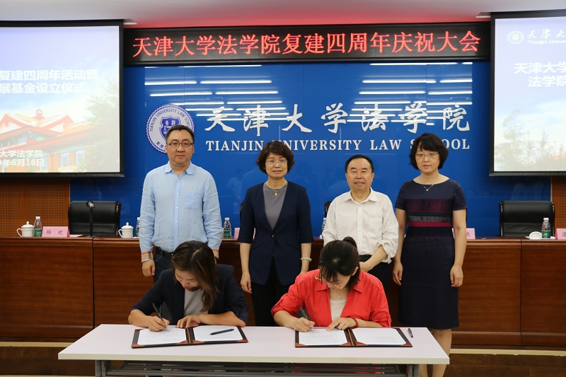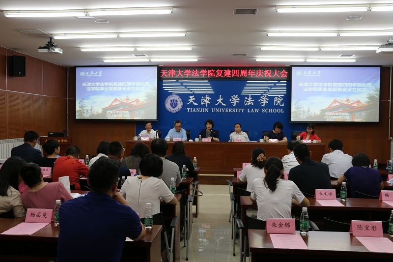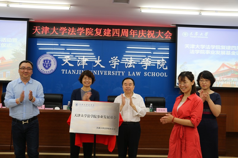 (通讯员 郭金石 摄影 付常辉)6月16日,法学院举行四周年院庆活动,设立学院事业发展基金。天津大学党委副书记雷鸣,人文社科处处长、文科建设办公室主任张俊艳,校友与基金事务处副处长潘晓睿,法学院院长孙佑海,法学院党委书记杨欢,学院教职员工以及五十余位天大法学校友出席活动。