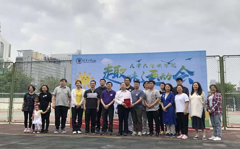 孙佑海宣布天津大学法学院第二届趣味运动会正式开始,各项比赛项目有条不紊进行。跳房子、打沙包、穿越呼啦圈、挑战“NO.1”, 师生们团结协作、默契配合。