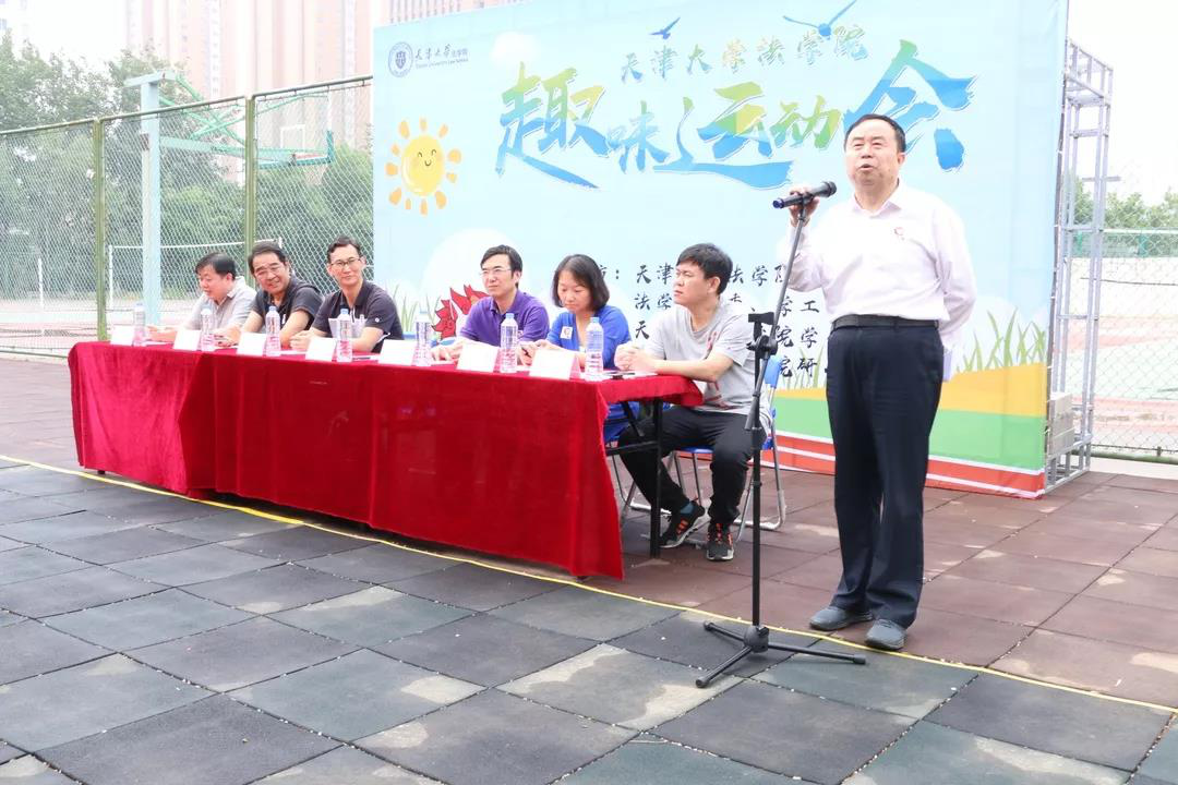 (通讯员:刘海楠、卢晓阁,摄影:姜凯文、侯林鑫、牛鼎鑫、高兆琨)2019年5月19日上午,天津大学法学院第二届“崇法梦漾,青春飞扬”师生趣味运动会于天津大学卫津路校区心理素质拓展基地举行。本次趣味运动会由天津大学法学院、法学院团委、学工办主办,法学院学生会承办,法学院研会协办。出席本次趣味运动会的有法学院院长孙佑海,党委书记杨欢,副院长蓝蓝、林卫峰,党委副书记、副院长李明,工会主席吕凯,院长助理杨健,以及法学院教职工、本科生及研究生。