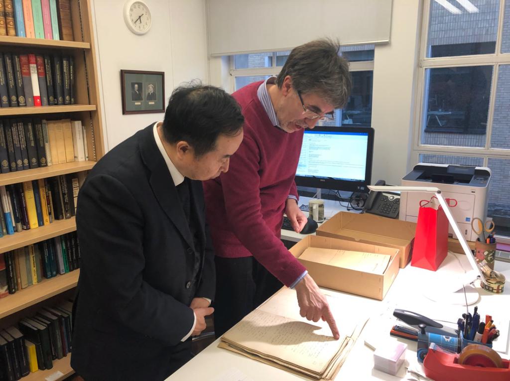 菲利普教授对孙佑海院长一行的到访表示热烈欢迎。会谈之前,孙院长等在菲利普教授的办公室参阅了UCL悉心收藏的英国著名法学家边沁的手稿,并向菲利普教授赠送了《天大日记》一书作为礼物。之后,双方就新版《边沁文集》中法学著作的中文版译介和我院与UCL法学院的合作事项进行了诚恳的交流。