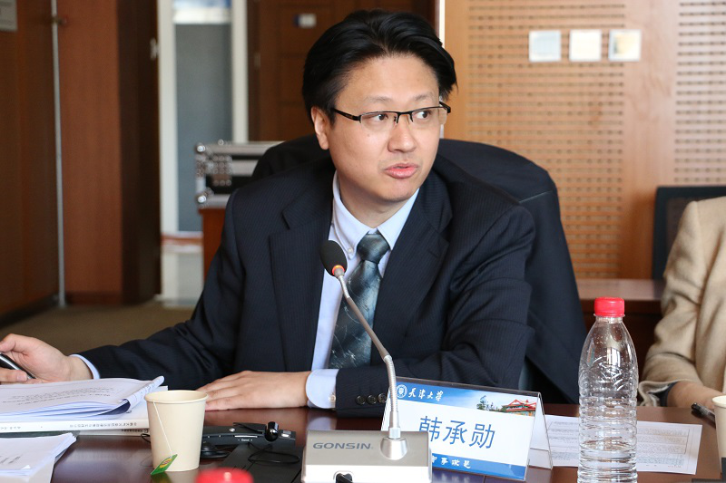 (通讯员 田亦尧 闫妍 张北 郭金石 摄影 闫妍 王操)2019年3月15日,由天津大学法学院、天津大学中国绿色发展研究院、韩国环境政策评价研究院(KEI)共同主办的中韩大气污染防治法律政策与实践研讨会在天津大学召开。中方代表,国家环境咨询委员会委员、中国环境资源法研究会副会长、天津大学法学院院长、天津大学中国绿色发展研究院执行院长孙佑海,天津大学法学院副院长、副教授蓝蓝,中国环境科学学会环境法分会副主任委员、青年长江学者、中国人民大学法学院教授竺效,中国环境科学学会环境法分会副主任委员、天津大学北洋英才计划长聘教授、中国绿色发展研究院副院长焦艳鹏,天津市人大常委会法工委原主任高绍林,天津市人大立法研究所助理研究员张瑾,天津大学法学院杨雅婷、代杰副教授,谈珊、陈学敏、施珵、田亦尧、王蕾凡博士等。韩方代表KEI首席研究员韩相云、秋长珉、李玄雨,KEI研究员丁省云,韩中法学会律师郑益雨,江南律师事务所律师朴昌信,北京华麦投资控股公司合伙人、法学博士韩承勋。