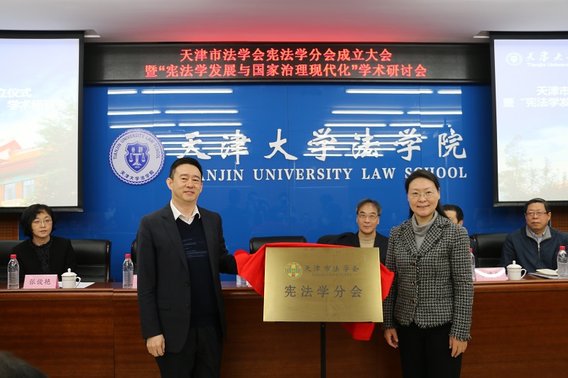 赵美蓉副书记与于浩明专职副会长共同为天津市法学会宪法学分会揭牌。