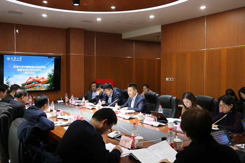 (通讯员 田源 郭金石)为贯彻落实党的十九大提出的“要运用现代的信息手段进行社会服务和管理”的指示精神,应用信息化、智能化手段推进天津智慧城市建设,提高我市社区管理服务能力,提升社区智能化建设水平,天津大学中国智慧法治研究院正式设立“智慧平安社区研究中心”,成立仪式于11月14日在天津大学法学院举行。中共天津市委政法委员会委员刘新强,天津大学党委常委、副校长元英进,天津大学法学院院长、中国智慧法治研究院执行院长孙佑海,天津大学教授王文俊,以及来自清华大学、北京交通大学、西安交通大学、中国人民公安大学、天津财经大学等高校, 中国电子科技集团公司第五十四研究所、公安部第一研究所、重庆云凯科技有限公司、上海依图网络科技有限公司等机构的专家学者三十余人出席会议。