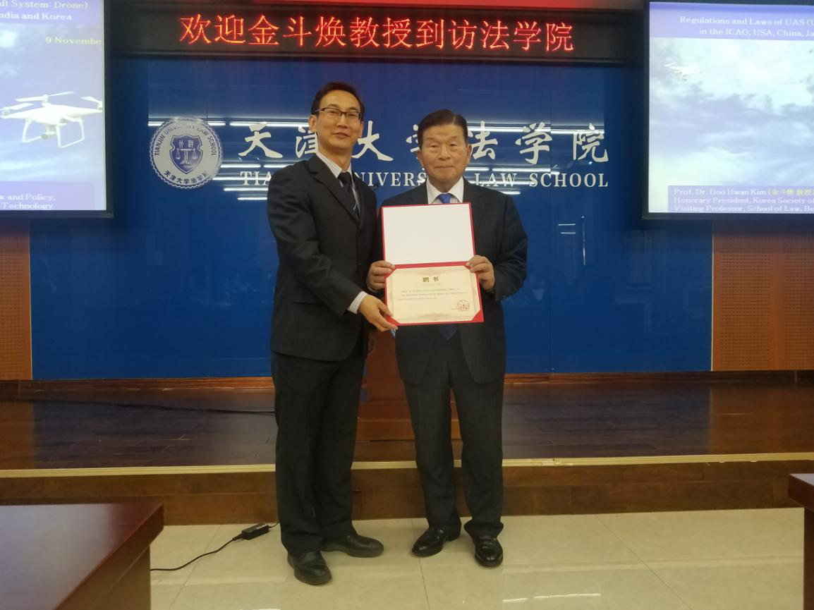 (通讯员 张云瑞)2018年11月9日,韩国航空航天法律政策学会名誉主席金斗焕教授到访天津大学,受邀为法学院学生进行讲座。这次讲座由天津大学法学院和就业指导中心联合举办。