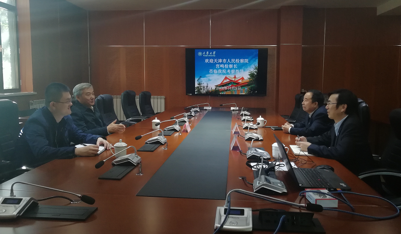 (通讯员 张丹)10月9日下午,天津市人民检察院宫鸣检察长莅临法学院考察指导。法学院院长孙佑海教授,党委书记杨欢陪同调研并一同座谈。
