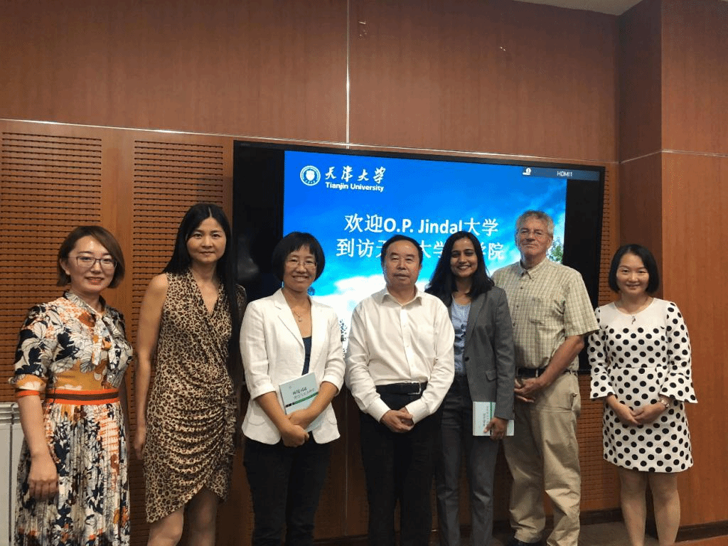 (通讯员 杨瑷嘉)9月16日,印度金德尔全球大学国际交流处主任Kalyani Unkule、国际合作助理院长兼中印研究中心执行主任张文娟到访天津大学法学院,商谈国际合作事宜。法学院孙佑海院长、蓝蓝副院长、古德丹教授、陈学敏讲师、国际化秘书杨瑷嘉出席会议。