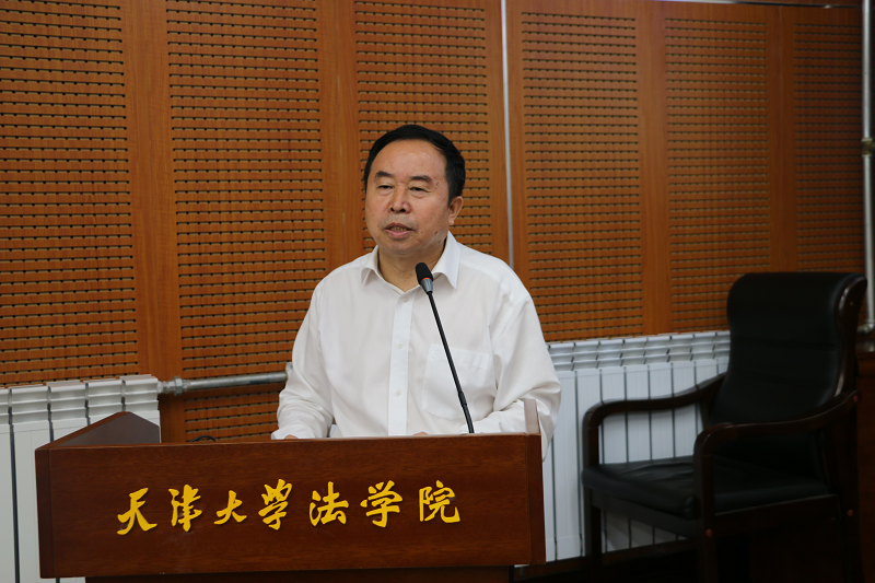 孙佑海院长讲话。他首先对2018级本科新生的到来表示衷心祝贺。孙佑海院长用三句话介绍了天津大学法学院,即辉煌的昨天、苦干的今天和美好的明天。天津大学法学院拥有三个最:最悠久的历史、最牛的毕业生、最光辉的业绩。天津大学法学院最早可以追溯到北洋大学最初开设的四大学门之首——律例学门;有最牛的毕业生张太雷同志和王宠惠先生,张太雷是中国共产党早期最重要的领导人之一,而王宠惠先生在孙中山执政期间曾担任外交总长,还曾参与过《开罗宣言》和《联合国宪章》的起草,其从德文译成英文的德国民法典长期作为英美法等国家法学院的专用教材;有最光辉的历史,法学院的优秀校友张太雷作为共产国际中国局书记,在推动中国共产党创建的过程中发挥了独特而极为重要的作用。今天的法学院,在科研成果、人才引进、学生培养、社会认可程度等方面取得了显著进步,著名民诉法学家张卫平教授、民法学者杨立新教授、刑法学家黄太云教授、戴长林教授等先后加盟,良好的师资力量为学院学生的发展搭建平台、创造机会。学院始终坚持复建以来确定的办学方针,“高起点,入主流,有特色,国际化”并时刻牢记“崇法厚德,致公天下”的院训,不忘初心,砥砺前行。同时,法学院拥有美好的明天。在2018年8月16日天津大学申请新增法学一级学科博士点专家论证会上,专家一致投票通过建议新增法学一级学科博士授权点并建议学校给予全力支持。复建三年来,学院的成果有目共睹,更美好的未来等待着在座的同学们去创造。