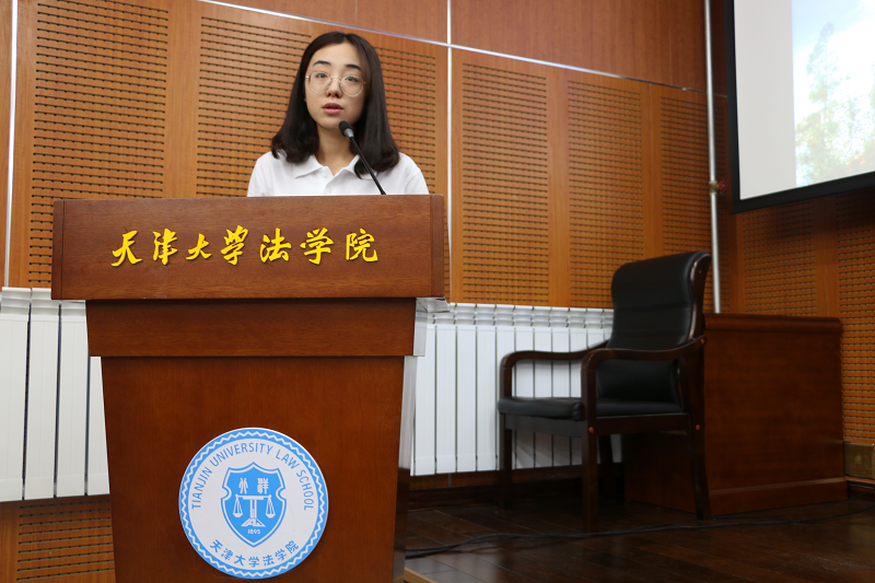 2018级本科生、第八期“天麟班”成员康瑀格同学代表本科新生发言。她表示在短短两周的新生周活动中,领略到了天津大学美丽的校园环境、悠久的历史和深厚的人文底蕴,老师及学长学姐对她耐心的指导和帮助也使她感受到了温暖与感动。康瑀格表示愿在未来的四年与同学们一同“上下求索”,在法学学习的漫漫长路上携手同行。