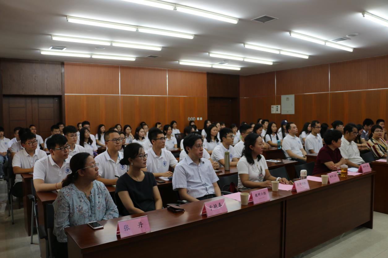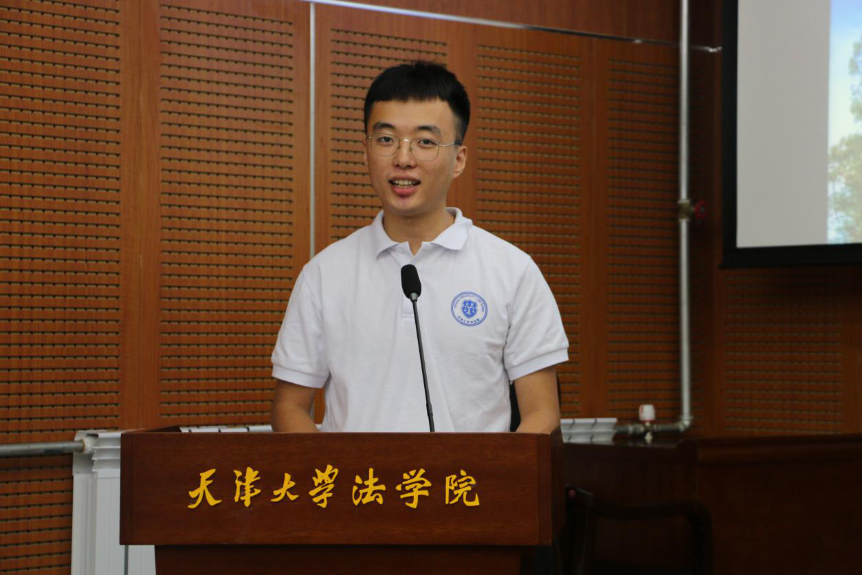 孙佑海院长讲话。他首先对 2018级硕士研究生新生的到来表示衷心祝贺,并向学院全体教师致以节日的问候。孙佑海用三句话介绍了天津大学法学院,即悠久的历史、苦干的今天和美好的明天。学院悠久的历史可追溯至1895年北洋大学堂成立之初,当时律例学门即为“四大学门”之首,北洋法科培养了革命先驱张太雷、外交家王宠惠、著名诗人徐志摩等无数先贤。学院于2015年6月17日正式复建,在复建之初确立了“高起点、入主流、有特色、国际化”的办学方针和“崇法厚德 致公天下”的院训。学院在科研成果、人才引进、学生培养、社会认可程度等方面取得了显著进步,著名民法学家杨立新教授、民诉法学家张卫平教授、刑法学家黄太云教授、戴长林教授等先后加盟天津大学法学院,良好的师资力量为学院学生的发展搭建平台、创造机会。法学院拥有美好的明天,在2018年8月16日天津大学申请新增法学一级学科博士点专家论证会上,专家一致投票通过建议新增法学一级学科博士授权点并建议学校给予全力支持。复建三年来,学院的成果有目共睹,更美好的明天等待着在座的同学们去创造。孙佑海对2018级新生提出了三点要求。第一,要认真钻研,打好基础;第二,他引用天津大学原副校长、水利部原副部长张含英的“三问”,懂么?会么?敢么?勉励同学们要懂得知识的原理,并理解运用,在工作学习中保有原则,做到真懂、真会、真敢;第三,要学法律、学法治、学法理,不仅要学习静态的法律文本,还要了解国家社会的治理模式、运行机制,更要在此过程中把握法理,认识规律。孙佑海对非全日制新生语重心长地说,非全日制的同学们更要学会珍惜时间,提高学习效率,要有规划,协调好自己的工作和学习,还要提高写作和沟通的能力。