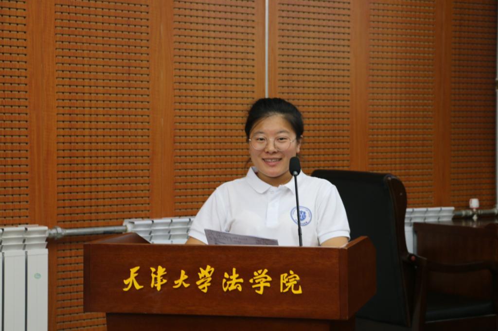 2018级全日制硕士研究生刘雪静、非全日制硕士研究生郭贵雨作为新生代表发言。刘雪静表示要和法学院一同学习、一同进步、一同成长。她讲道,作为一名研究生,一要自立自强,尊师重道,唯有自立自强方可彰显天大学生本色;二要学好理论基础,做到知行合一,恪守校训、院训,扎实自己的法学理论基础,为后续的实践之旅做好功课;三要坚定家国情怀,贴近社会立足民生,做家国情怀的践行者。