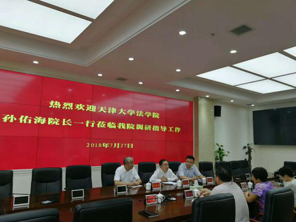 (通讯员 付常辉)7月27日下午,天津大学法学院院长孙佑海教授到贵阳市中级人民法院、贵阳市人民检察院调研考察。贵阳市人民政府副秘书长宋叙言、宗士强陪同调研。