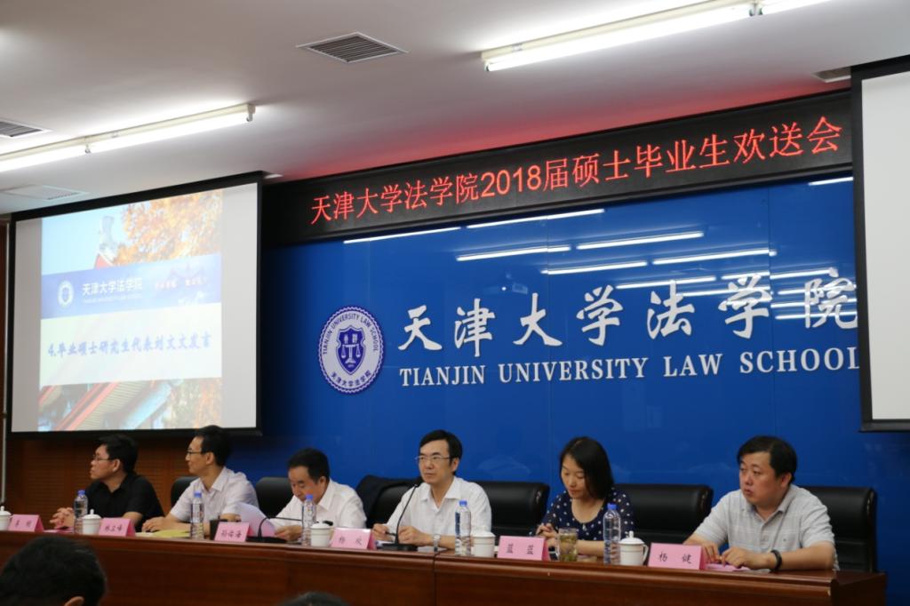 天津大学法学院在总结经验基础上,创新形式,提升规格,组织举办2018届硕士研究生毕业生欢送会,体现了学院对毕业生的重视和鼓励,更进一步增强毕业生同学对学院的归属感。愿大家带着学院的祝福,师长的嘱托,朋友的关怀,坚定地在自己选择的路上走下去,坚持奋斗,坚持到底,我们坚信,美好的明天一定是属于你们的!