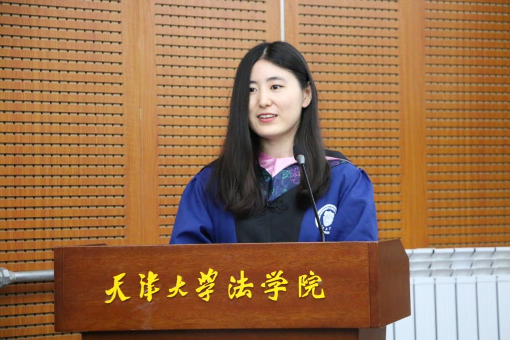 2018届法律硕士刘文文、法学硕士白安磊分别作为学生代表发言。刘文文回忆起刚入学时的场景,对即将完成从学生到校友的转变感慨万千,她将入职天津市法院系统,将带着“天大法律人”对法治的坚守,开启人生新旅程。白安磊细数北洋园六载情,见证了法学院的复建和发展,感叹于学院每天发生的可喜变化,同时感谢母校的培养、师长的教诲和同窗的情谊,对将要离开的法学院饱含深情。