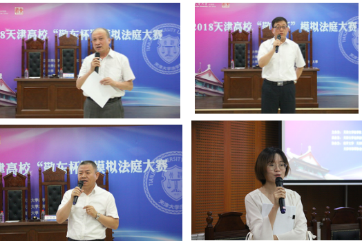 2018年6月11日上午,来自天津大学、南开大学、天津师范大学、天津科技大学和天津财经大学的参赛队伍齐聚天津大学第7教学楼模拟法庭,共同参加2018天津高校“敬东杯”模拟法庭大赛。出席本次比赛的嘉宾和评审有天津大学法学院院长孙佑海、天津市人大常委会法制工作委员会原主任高绍林、天津市高级人民法院原副院长张勉、天津市司法局律管处副处长马秀丽、天津市滨海新区司法局处长邢纪安、 天津敬东律师事务所主任胡有斌、天津师范大学法学院党委书记阮大强、天津财经大学法学院长陈灿平、天津科技大学法政学院院长王吉林、南开大学法学院教授陈兵、天津大学法学院教授、大赛顾问刘晓纯。开幕式由法学院党委副书记、副院长李明主持。