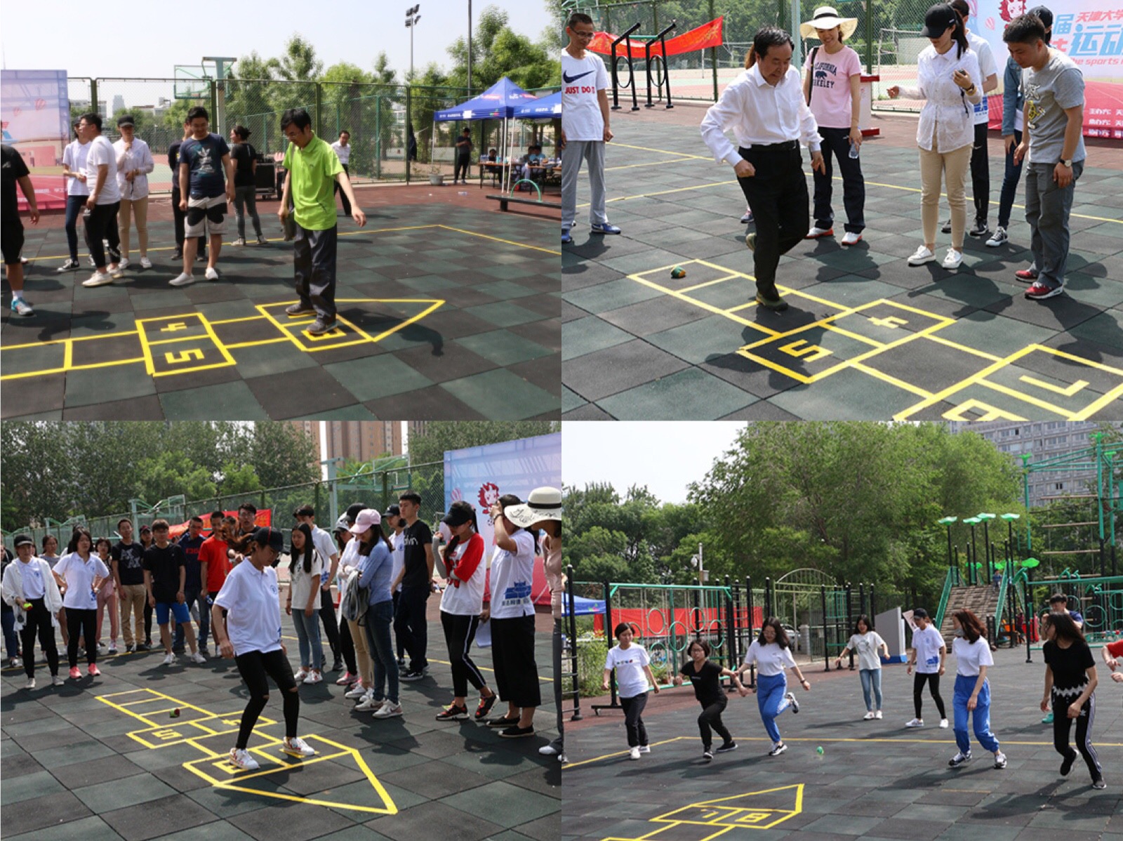 第三项跳房子,各参赛选手仿佛回到了童年,欢乐的氛围也感染着所有在场的师生。