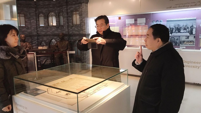 郃中林局长首先到天津大学校史博物馆考察,他重点参观了校史馆的法科毕业生——中共早期领导人张太雷、法科毕业生——著名法学家、中国第一个国际法院正法官王宠惠、法科毕业生——著名法学家、中国第二个国际法院正法官徐谟的图片资料,并与我校有关专家进行了工作交流。