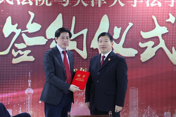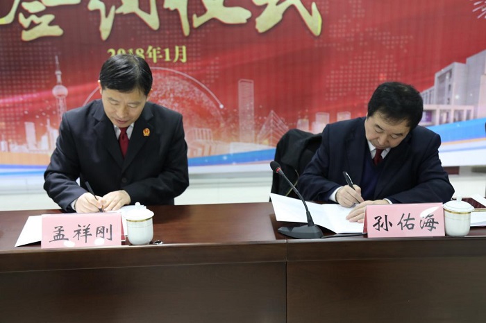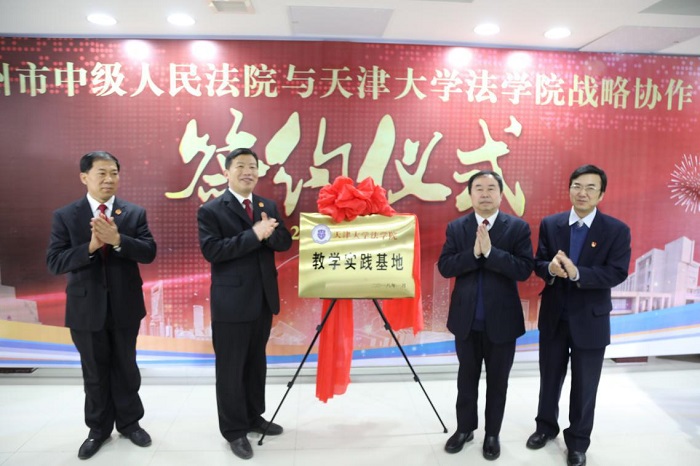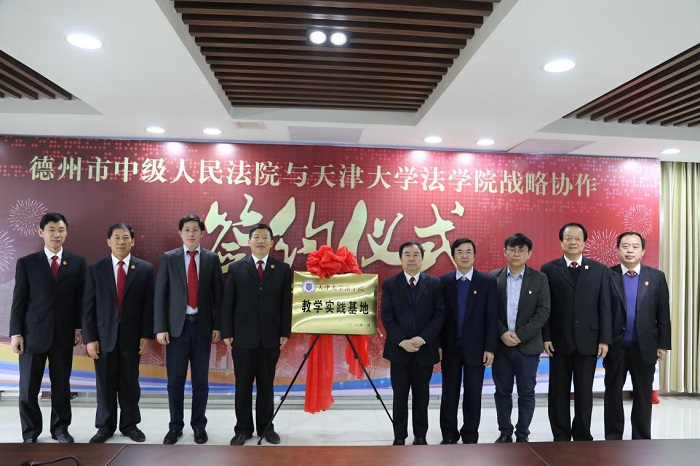 1月18日,天津大学法学院与德州中院举行“坚守法治信仰,维护公平正义”院校合作签约仪式,开启院校深度共建合作。双方共商培育复合型法律教学人才和法律实务人才、促进法院工作和法律教学科研融合发展。天津大学法学院院长孙佑海,德州中院党组书记、院长孟祥刚分别致辞,作为双方代表签字,并为教学实践基地揭牌。天津大学法学院党委书记杨欢,天津大学法学院党委副书记、副院长李明,天津大学法学院教授俞风雷参加。德州中院党组副书记、副院长郭仁军主持仪式。德州中院党组成员、副院长李文铎宣读《关于德州市中级人民法院聘请天津大学兼职教授的决定》。德州中院党组成员、副院长、政治部主任李秀政,德州中院党组成员、专职审委会委员杨炳超,德州中院各业务庭庭长和相关部门负责人参加签约仪式。