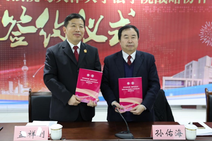 孙佑海院长和孟祥刚院长签约并互换协议。