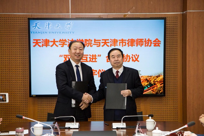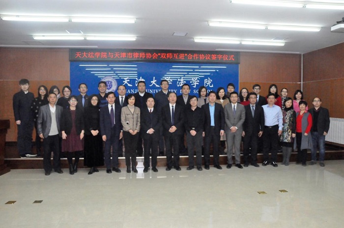 本站讯(通讯员 蓝蓝)2018年1月15日,天津大学法学院与天津市律协在天津大学法学院330会议室举行了隆重的“双师互进”合作协议签字仪式。天津市律协会长杨玉芙、秘书长郑凤英、副会长温志胜、王世清、牛同栩以及各专门委员会专业委员会的律师代表,天津大学法学院院长孙佑海、党委书记杨欢、副院长蓝蓝、教师代表刘晓纯、李士萍、陈天霞及多位青年教师,学生代表、媒体等共40余人参加了签字仪式。签字仪式由蓝蓝副院长主持。