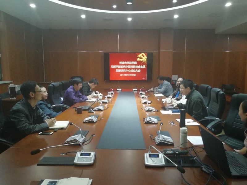 本站讯(通讯员 郭金石)10月25日,值此党的十九大胜利闭幕之际,天津大学法学院正式成立习近平新时代中国特色社会主义思想研究中心并举行座谈会。法学院院长孙佑海,党委书记杨欢,副院长林卫峰,副院长蓝蓝,副书记、副院长李明,以及学院教师代表张建伟教授、刘晓纯教授、杨健副教授、杨雅婷老师、施珵老师等出席会议。