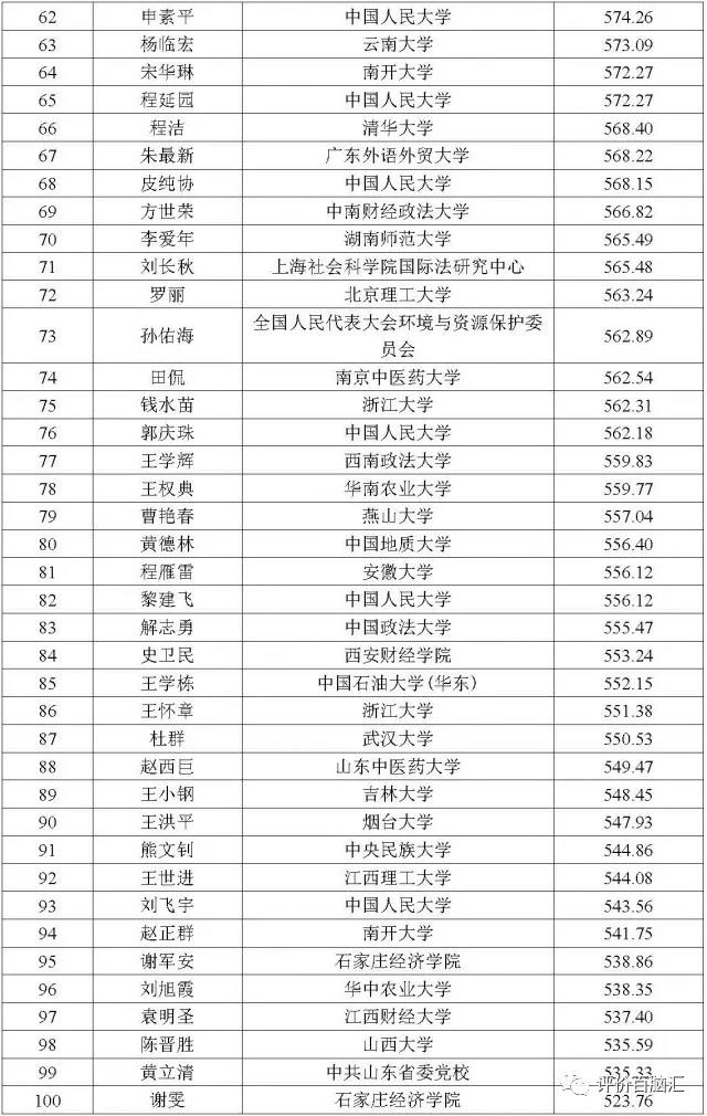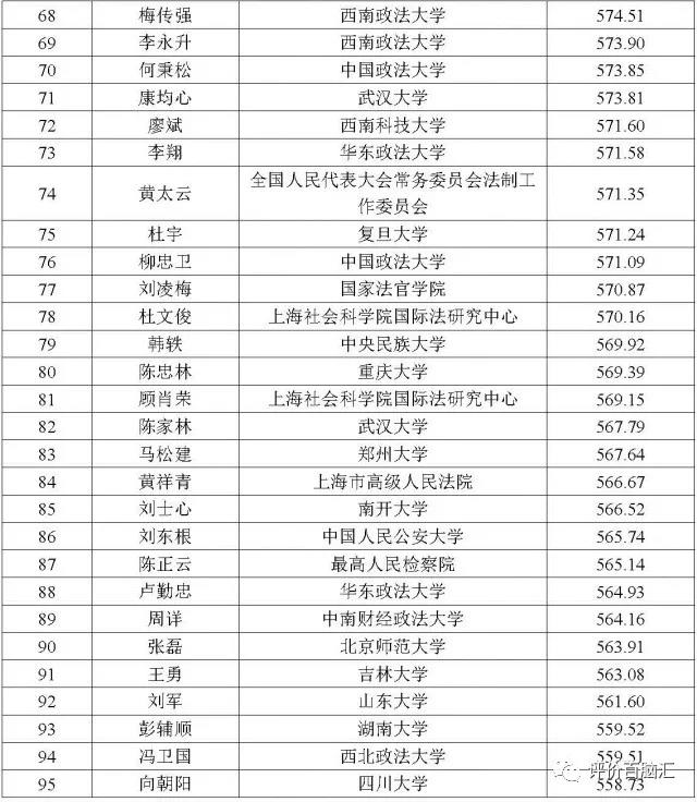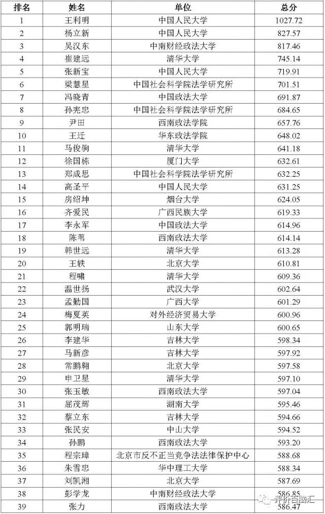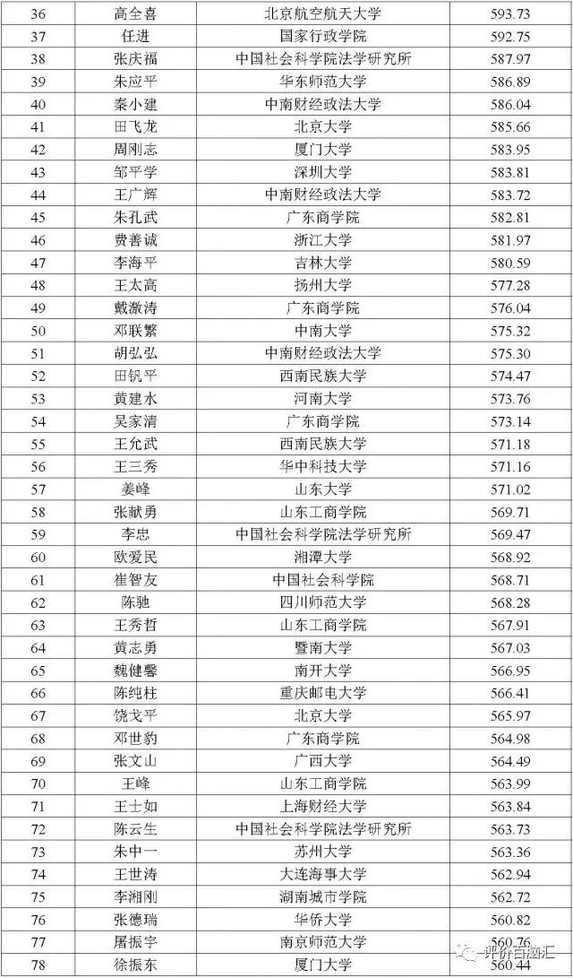 我院四位教授入选中国哲学社会科学法学学科最有影响力学者排行榜。
