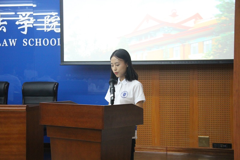 研究生新生代表王操首先从“高起点、入主流、有特色、国际化”的办院思路着手,谈了自己对天津大学法学院的认识与印象。之后对自己的研究生阶段提出三点要求:“求是”即要对法律知识,法学理论牢固掌握与融会贯通。“厚德”就是要发扬品德,坚信正义,坚守法律人的操守。“致公”就是要心怀家国天下,决心为国家,为社会,为人民奉献一切。