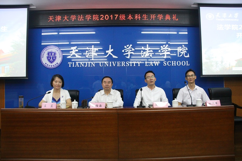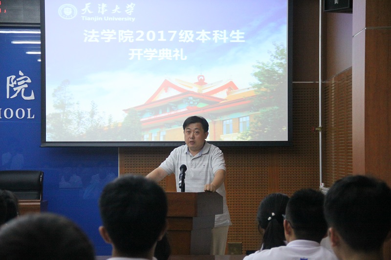 孙佑海院长讲话指出,大学之大,不在于大楼,而在于大师。大学中有无好老师,对学生一生的发展至关重要。在好的大学,与好老师、好同学在一起,会互相促进,顺利成长。另外,好的大学也将为同学们提供更好的成长环境,而天津大学以及天津大学法学院正是这样一个良好的平台。孙院长介绍了北洋法科的悠久历史传统、学院复建两年来所取得的各项成就以及办院方针。孙院长从校训“实事求是”的角度,希望同学们从实际出发,不断钻研探求,掌握适合自己的学习规律;从院训“崇法厚德,致公天下”的角度,希望同学们将法律作为人生的信仰,掌握治国理政的本领。与此同时法律需要解决社会问题,承担这样重大的使命,因此要求法律人具有良好的道德操守。“致公天下”要求同学们具有家国天下的情怀,以天下为己任,为了人类的命运而学习和适用法律。