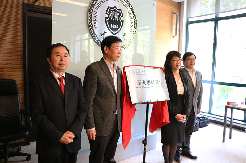 王依仁女士、李仕春主任、李家俊书记和孙佑海院长共同为天津大学王宠惠研究会揭牌。