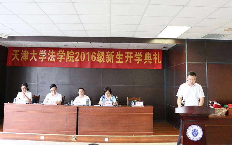 孙佑海院长作重要讲话。他首先谈到为什么要办大学。中国古代《大学》有云:“大学之道,在明明德,在亲民,在止于至善”。现代社会为大学赋予了育人、科研、社会服务和文化交融的功能,而大学最根本的功能还是育人。近现代的高等教育起源于法学。法学是正义之学、治国之学、为民之学。从事法学教育的人责任重大、使命光荣。接下来,孙院长介绍了天津大学法科的历史传承,法学院的办学方针以及复建以来所取得的各项成绩。最后,孙院长立足天大“实事求是”的校训和法学院“崇法厚德,致公天下”的院训,向同学们提出五点殷切希望:第一,要实事求是,严谨治学。要牢记水利专家、天大校友张含英先生的“懂吗?会吗?敢吗?”的三问,做一个“真懂、真会、真敢”的人;第二,要崇尚法律,信仰法治。要自觉培育法律人的坚韧性格,永远坚守法律原则;第三,要情操高尚,培育厚德。要热爱祖国、热爱学业、诚实守信,与大家和睦相处,并注重职业伦理和政治道德的养成。第四,胸怀祖国,致公天下。希望同学们树立远大目标,为祖国服务,为全人类服务。第五,拓展知识结构,打牢发展基础。在学习法学的同时,还要注意学习文学、历史、哲学、经济、政治、艺术、科技等多方面知识,努力把自己培养成为国家和人民需要的高素质法学人才。