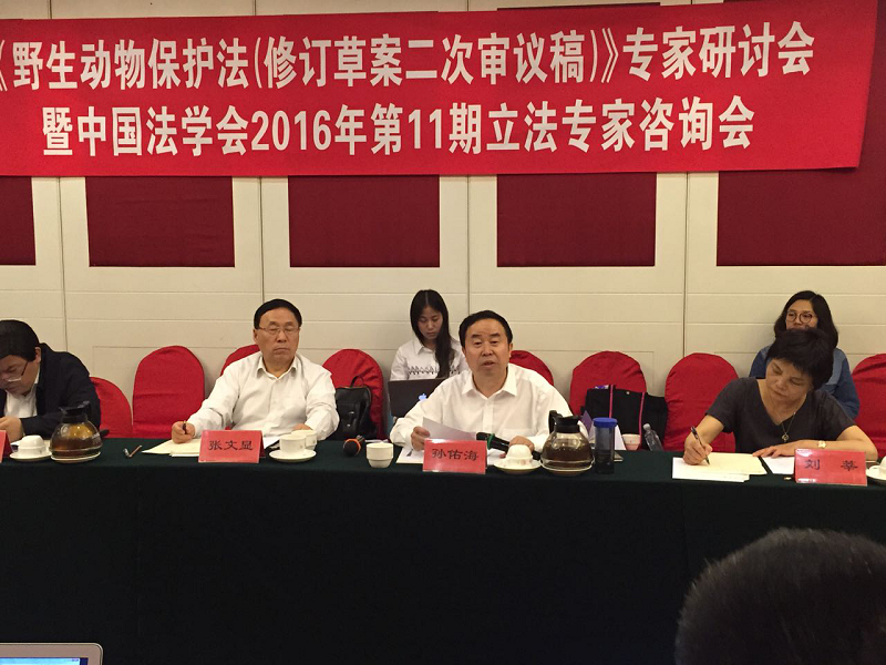 本站讯(通讯员 孙淑芬)2016年5月10日,受全国人大常委会法工委的委托,中国法学会组织有关专家对《中华人民共和国野生动物保护法(修订二稿)》进行论证。中国法学会副会长兼学术委员会主任张文显教授、天津大学法学院院长孙佑海教授、中国政法大学王灿发教授等法学专家以及野生动物保护领域的专业人士出席了本次会议。